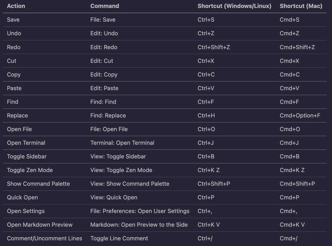 Note: Some shortcuts may differ depending on your operating system and keyboard layout.